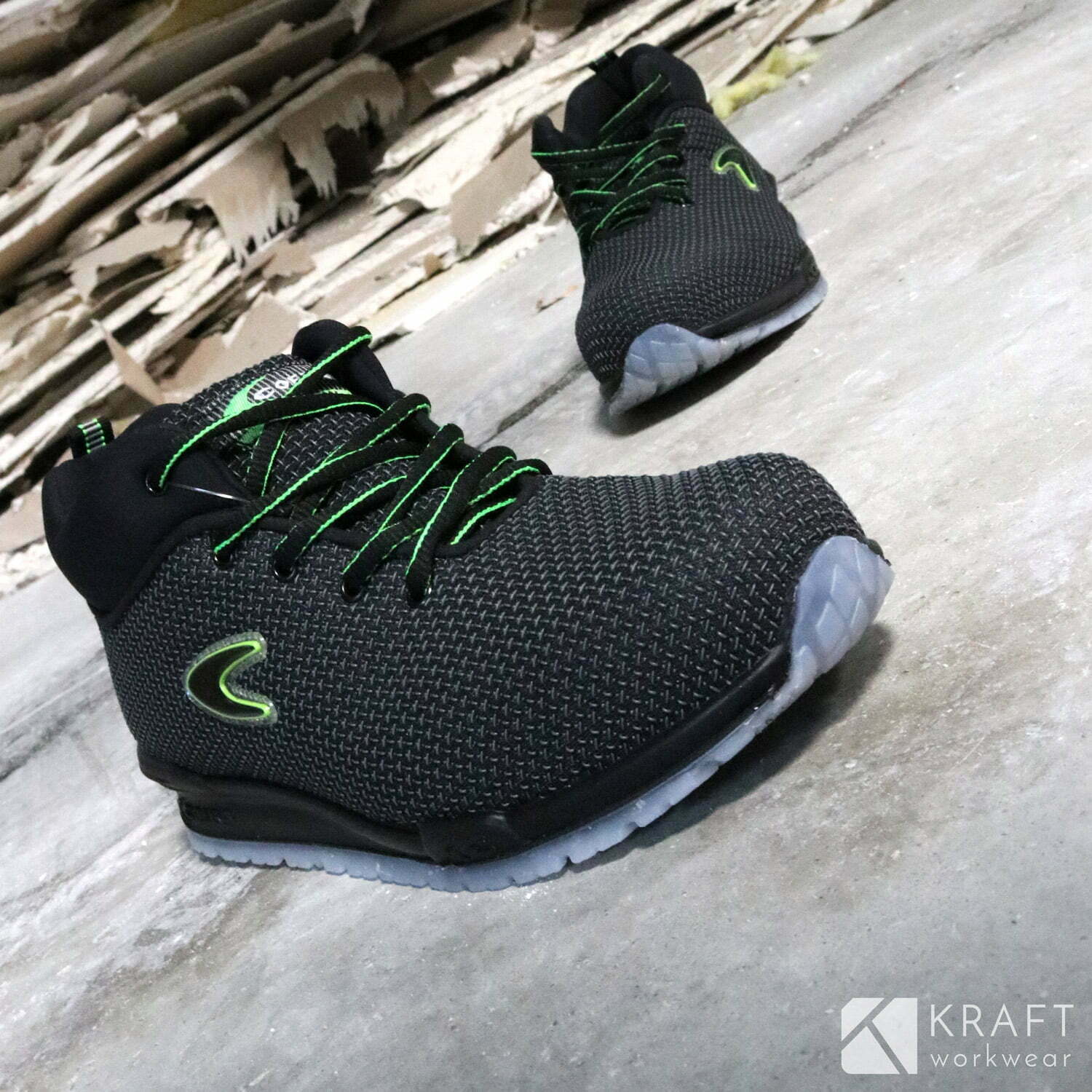 La Monti pousse et grandit ! Nous sommes fiers de vous présenter notre nouveauté tant attendue, la basket de sécurité montante ultra légère de chez Cofra ! A mi-chemin entre la basket basse et le brodequin qui remonte au-dessus des chevilles, la Spinning se distingue avec son renfort molletonné qui permet de mieux maintenir la cheville. Toujours aussi résistante avec sa tige en Techshell ultrarésistante, elle reste un modèle léger avec moins de 550 grammes par chaussure dans la taille 42.
